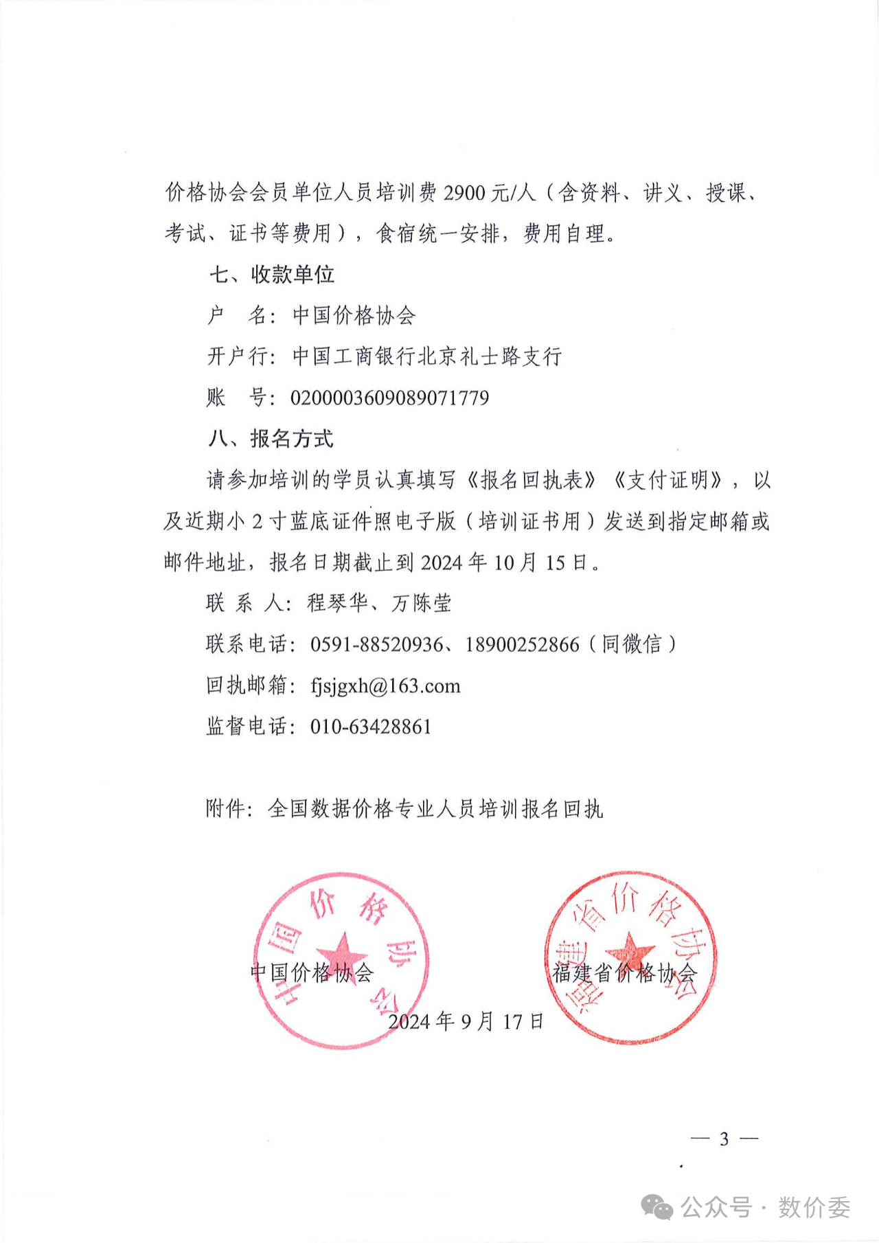 數據價格專業人員培訓費3700元/人,中國價格協會及福建省價格協會會員單位人員培訓費2900元/人(含資料、講義、授課、考試、證書等費用),食宿統一安排,費用自理。